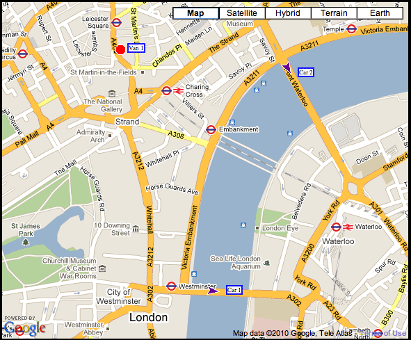 A map like this on the right of the web page shows the position and direction of all the vehicles.